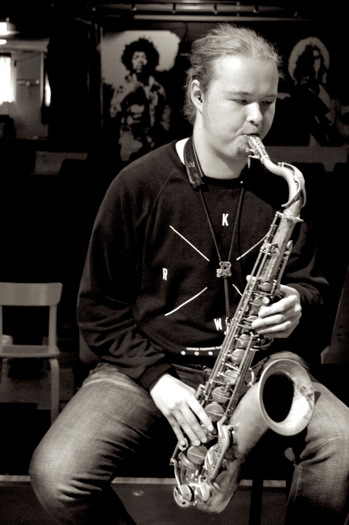 Jimi Ahlroos is a young saxophone player from Oulu, Finland. As a nine year old in 2010 he took up the saxophone as his main instrument and later proceeded to apply to a local music school and the Oulu Conservatory. He has studied and played various styles of rhythm music and has performed in ensembles ranging from big bands to smaller groups. His big band work includes playing in The Finnish Junior All-Star Big Band, Oulu Youth Jazz Orchestra, Oulu All Star Big Band, and Arctic Pulse Jazz Orchestra. Jimi is now studying at the great Sibelius Academy, in Helsinki.
